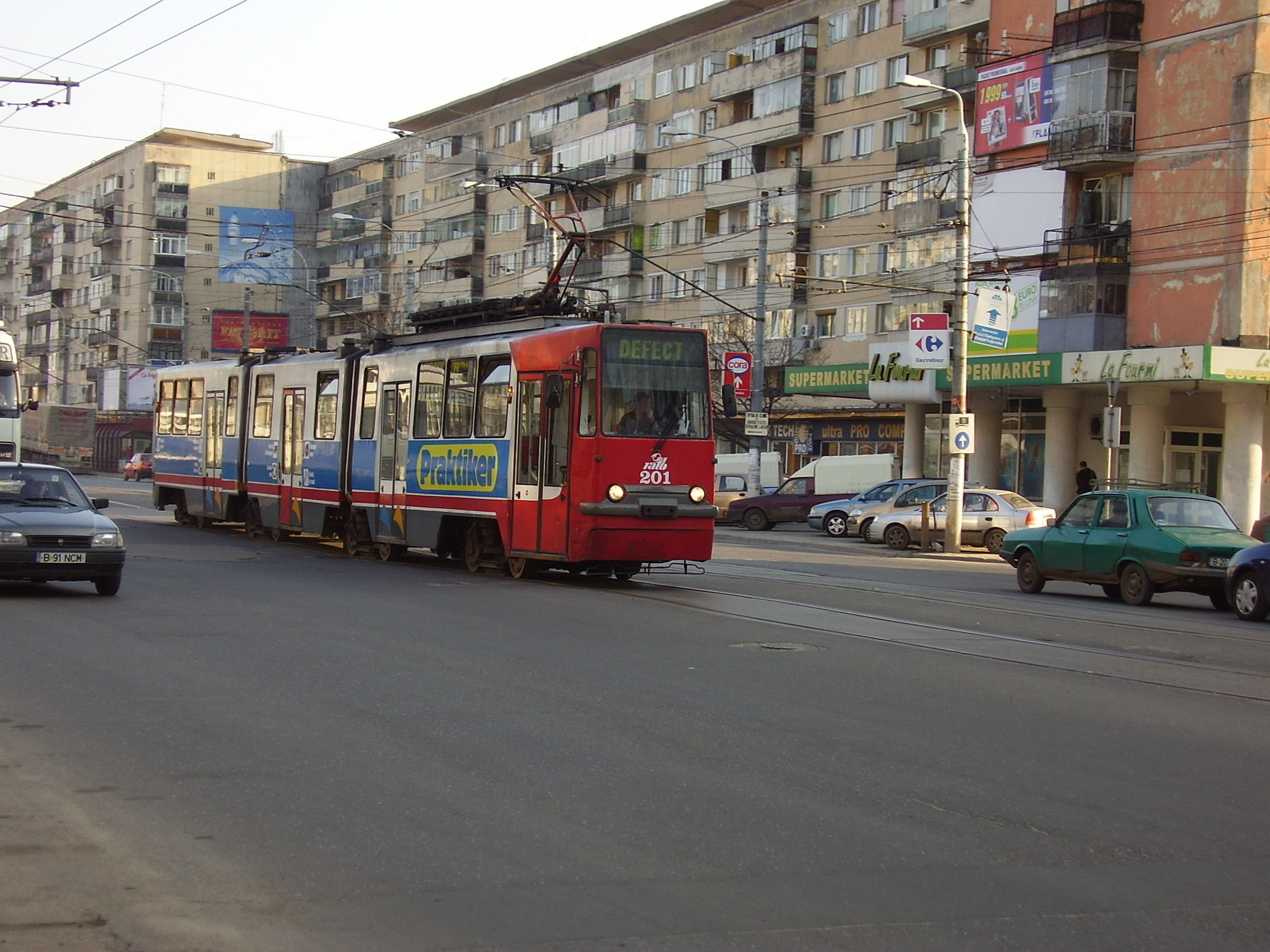 Vehicule circuland pe linia D in Bucuresti.