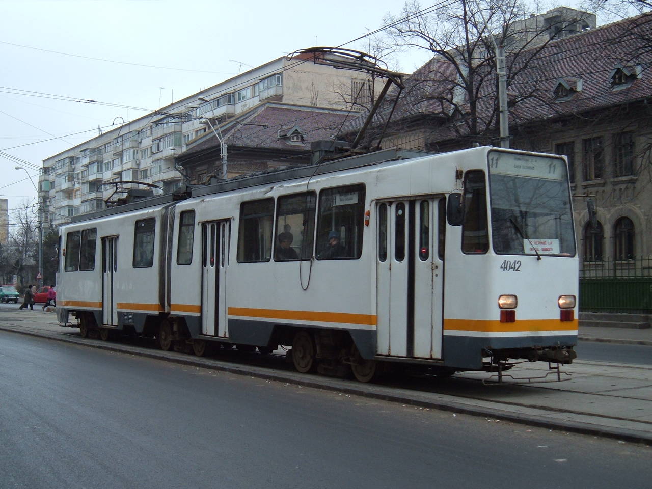 Vehicule circuland pe linia R in Bucuresti.