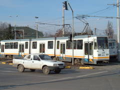 Vehicule circuland pe linia R in Bucuresti.