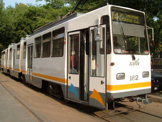 Vehicule circuland pe linia 14 in Bucuresti.
