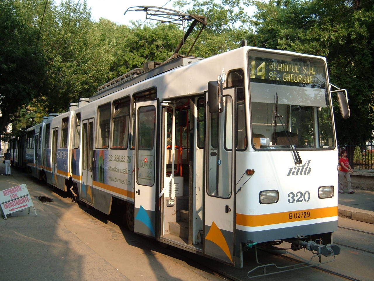 Tramvaie circuland pe linia 14 in Bucuresti.