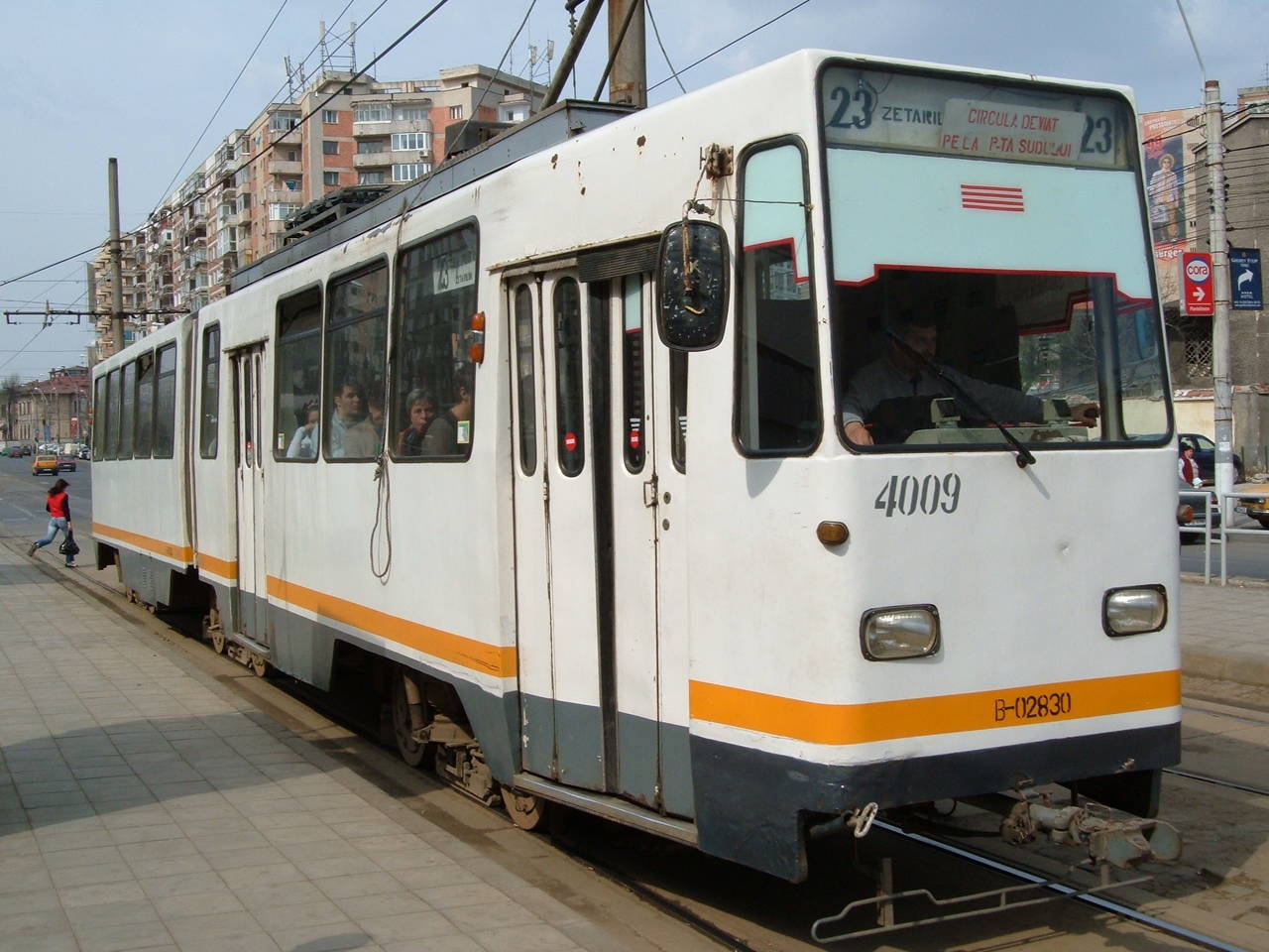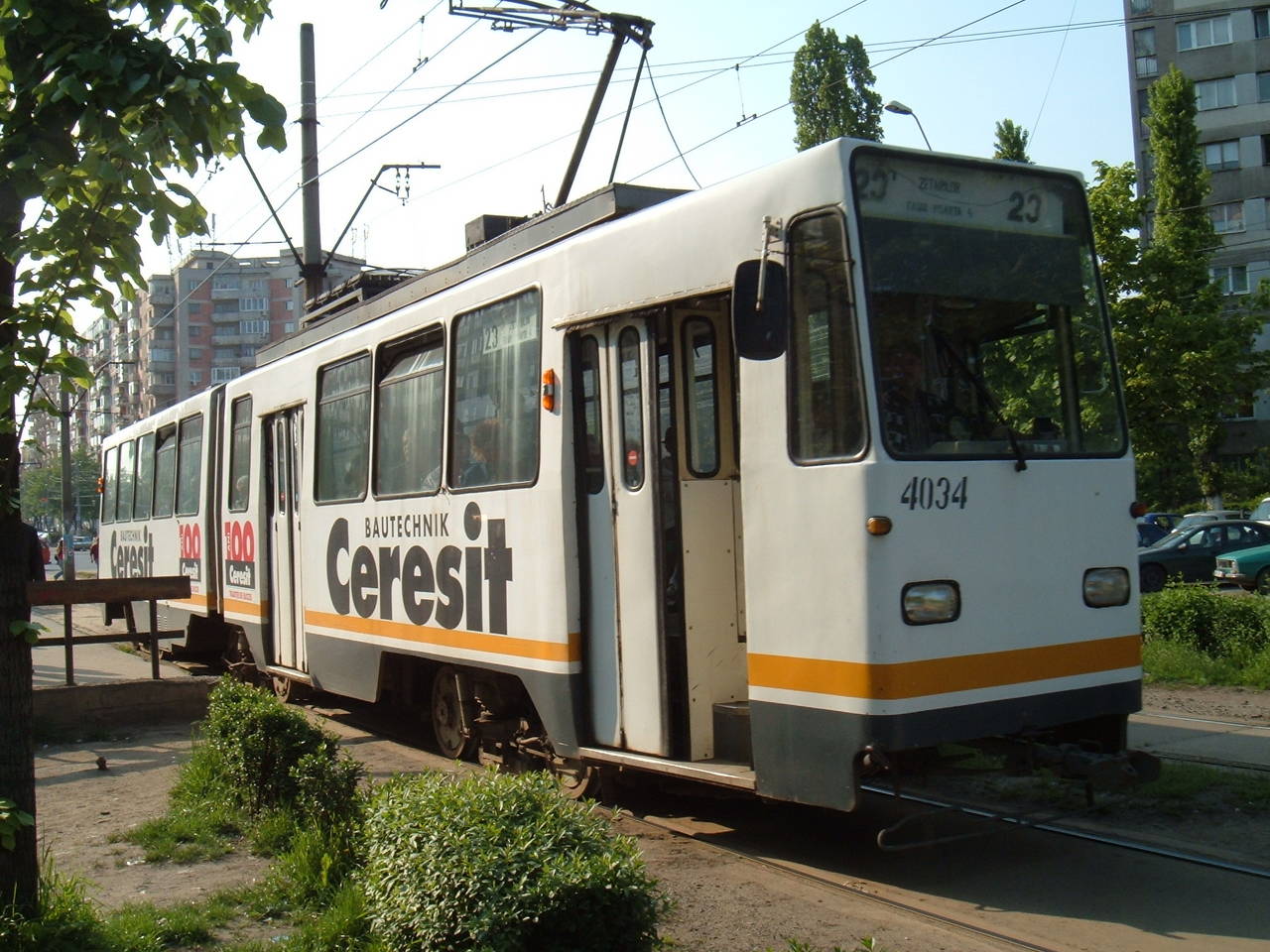 Tramvaie V2A circuland pe linia 23 in Bucuresti.