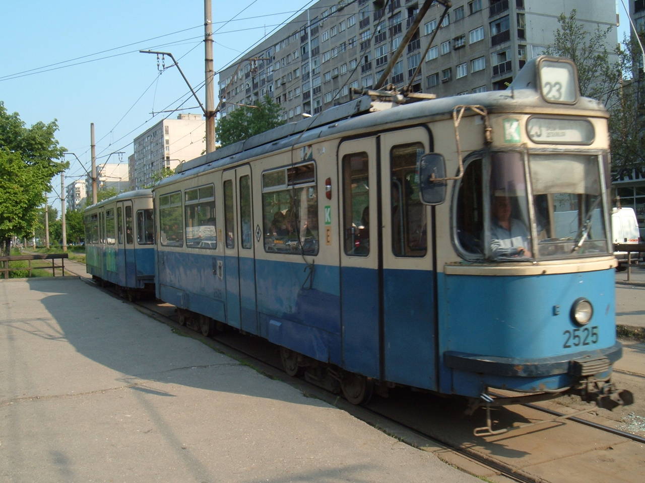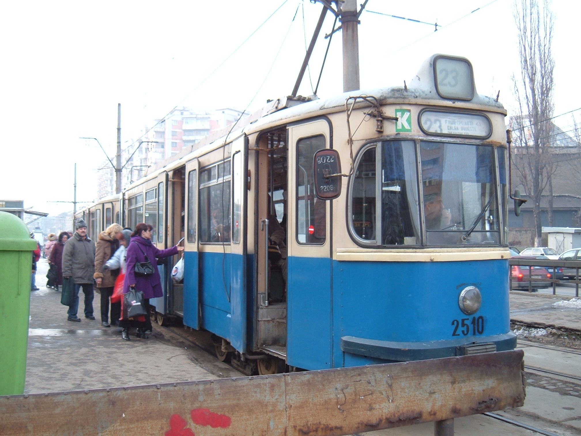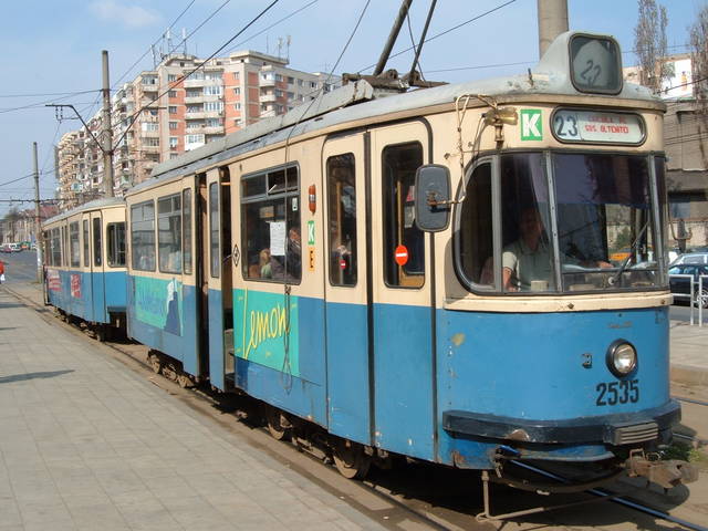 Tramvaie Rathgeber circuland pe linia 23 in Bucuresti.