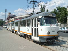 Tramvaie circuland pe linia 35 in Bucuresti.