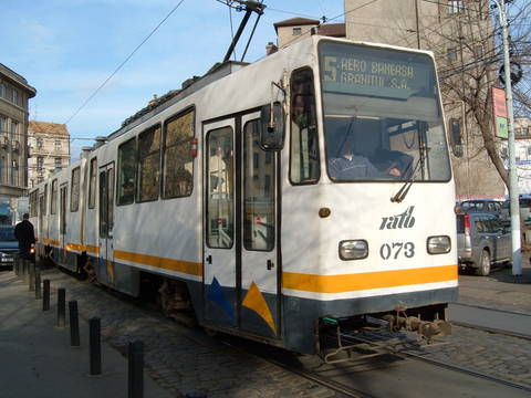 Ati cautat: Tramvaie circuland pe linia 5 in Bucuresti.