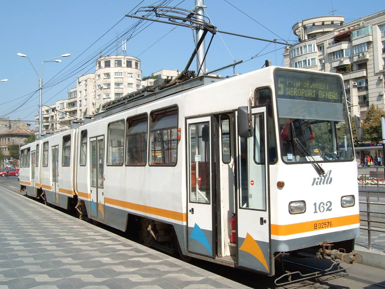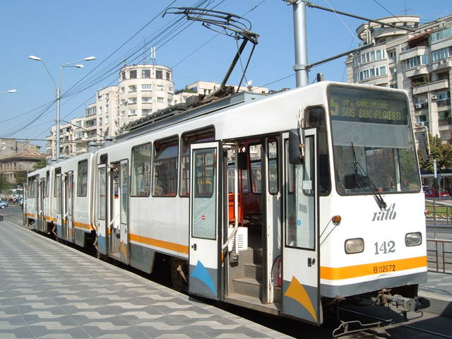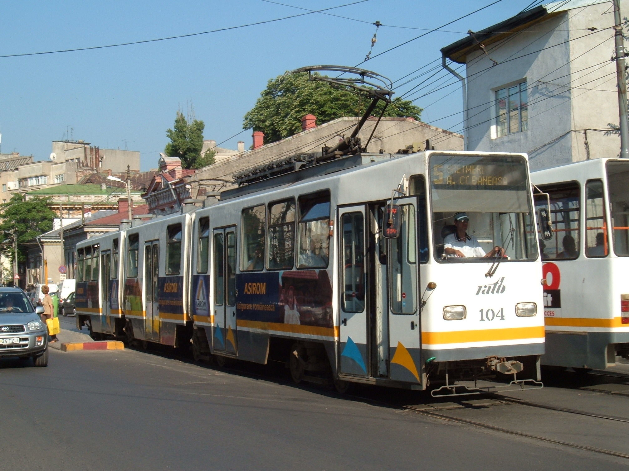 Tramvaie circuland pe linia 5 in Bucuresti.
