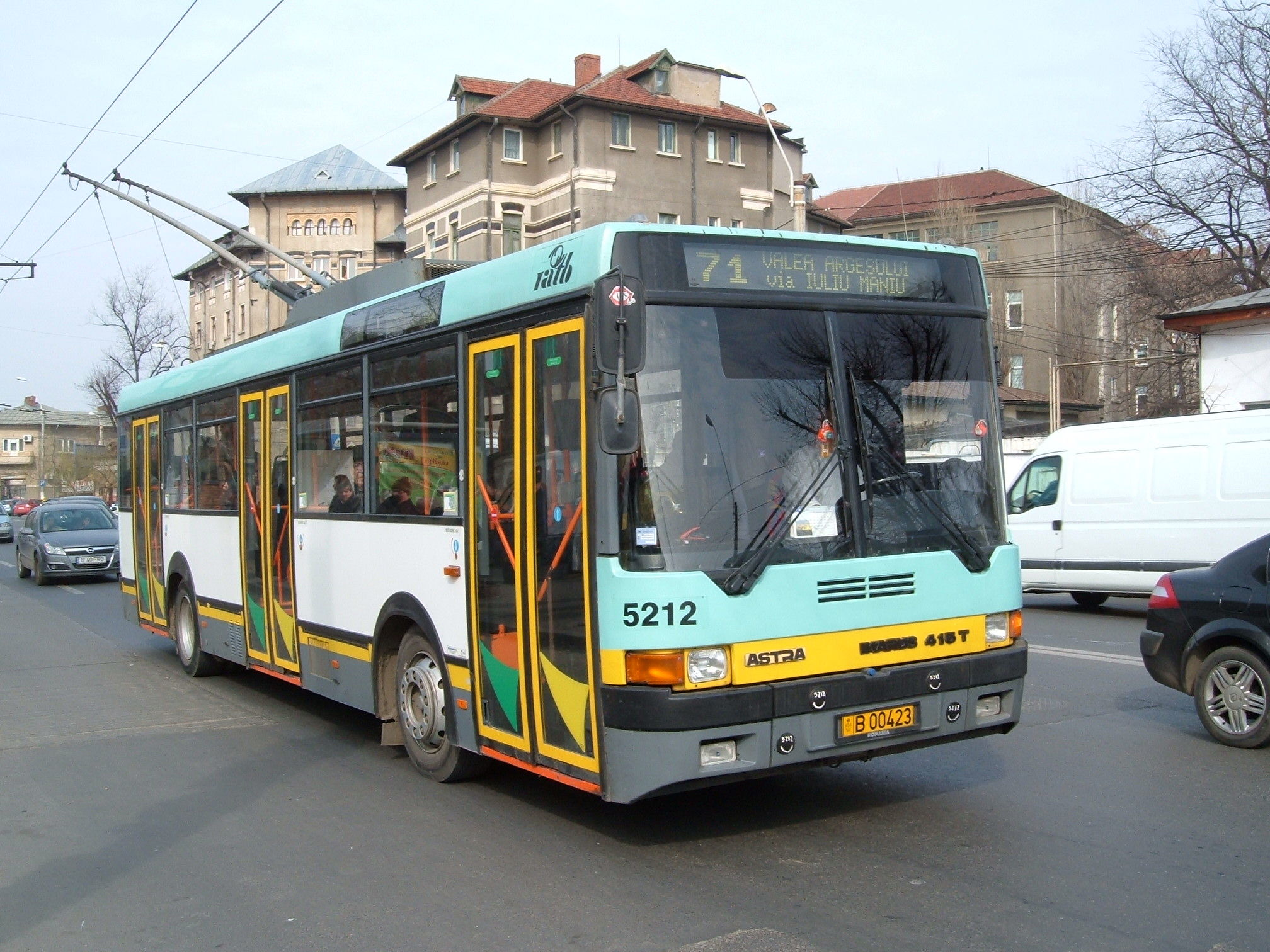 Troleibuze circuland pe linia 71 in Bucuresti.
