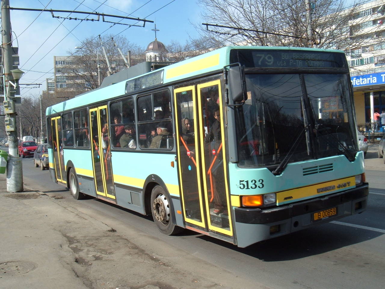 Troleibuze circuland pe linia 79 in Bucuresti.